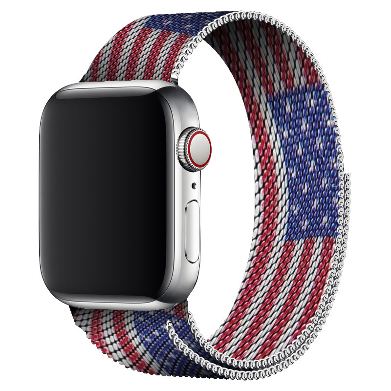 Apple Watch 42 mm Sikai piros-fehér-kék színű „amerikai zászló” mintás milánói „rozsdamentes acél” szíj