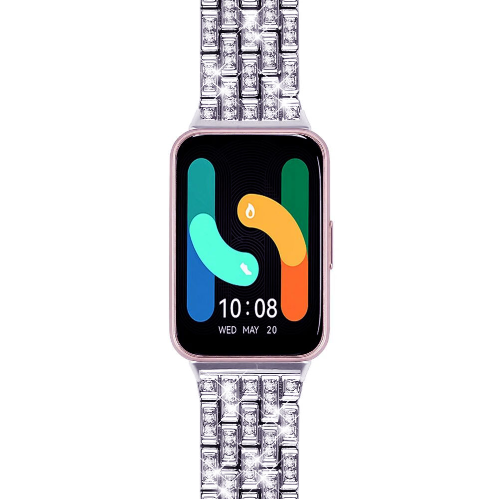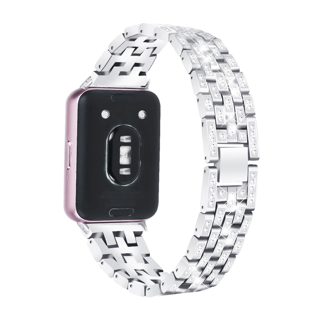 Samsung Galaxy Fit 3 Sikai ezüst színű „strasszkő” díszítésű láncszemes „rozsdamentes acél” szíj