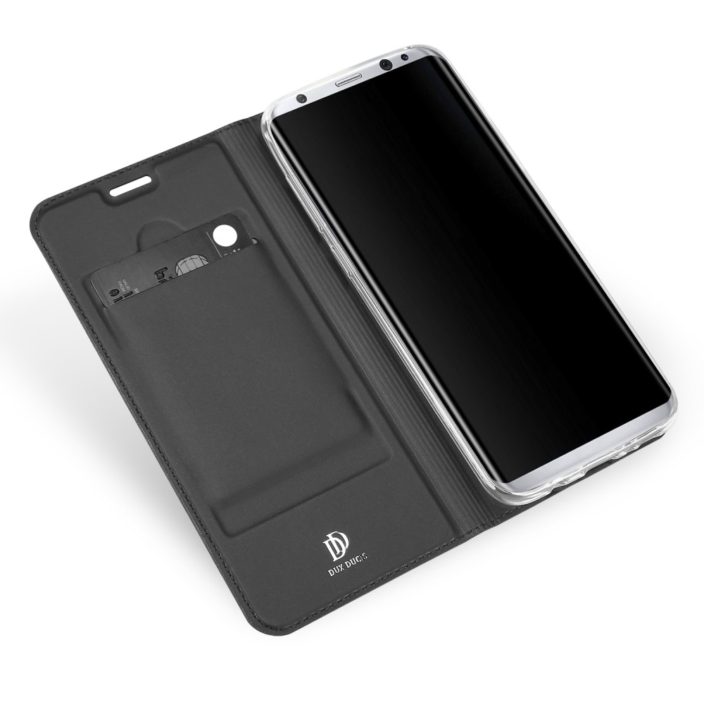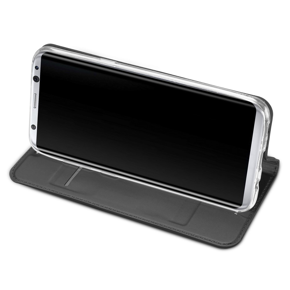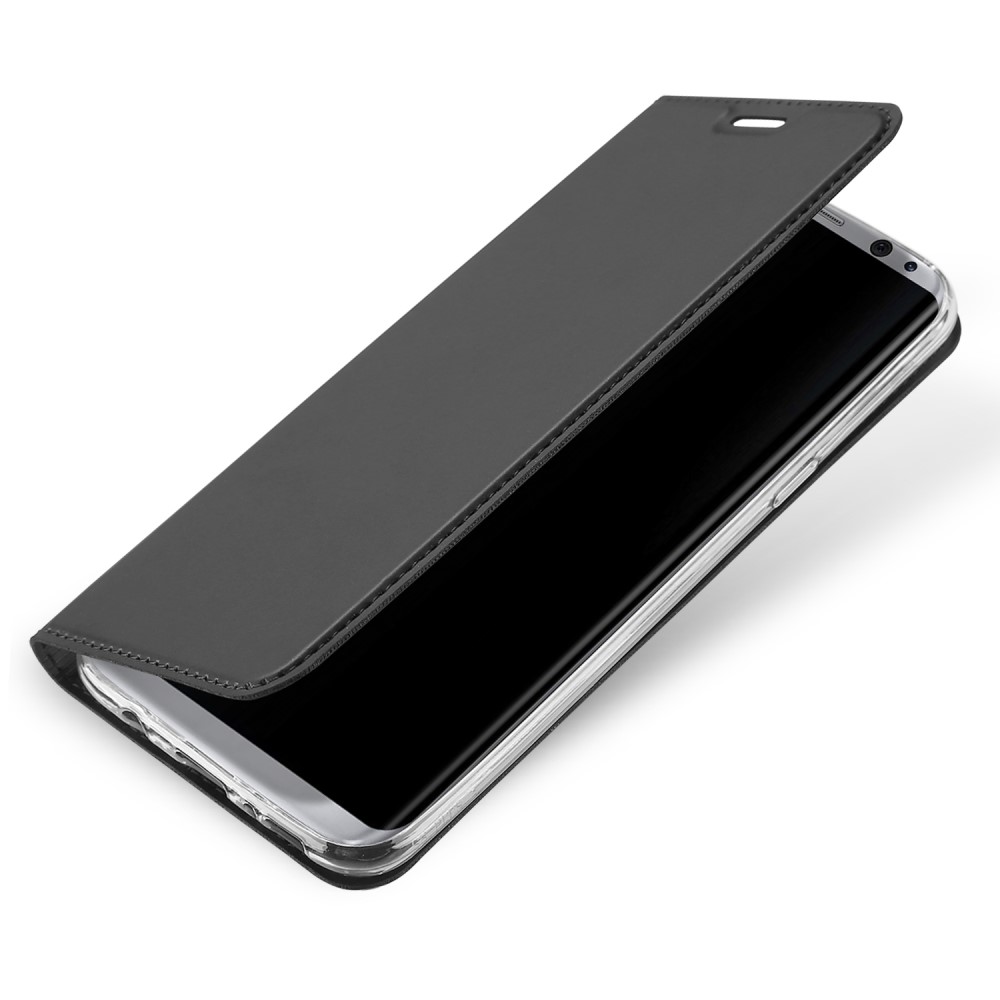 Samsung Galaxy S8+ Dux Ducis mágneses „oldalra nyíló” grafitszürke színű bőr flip tok