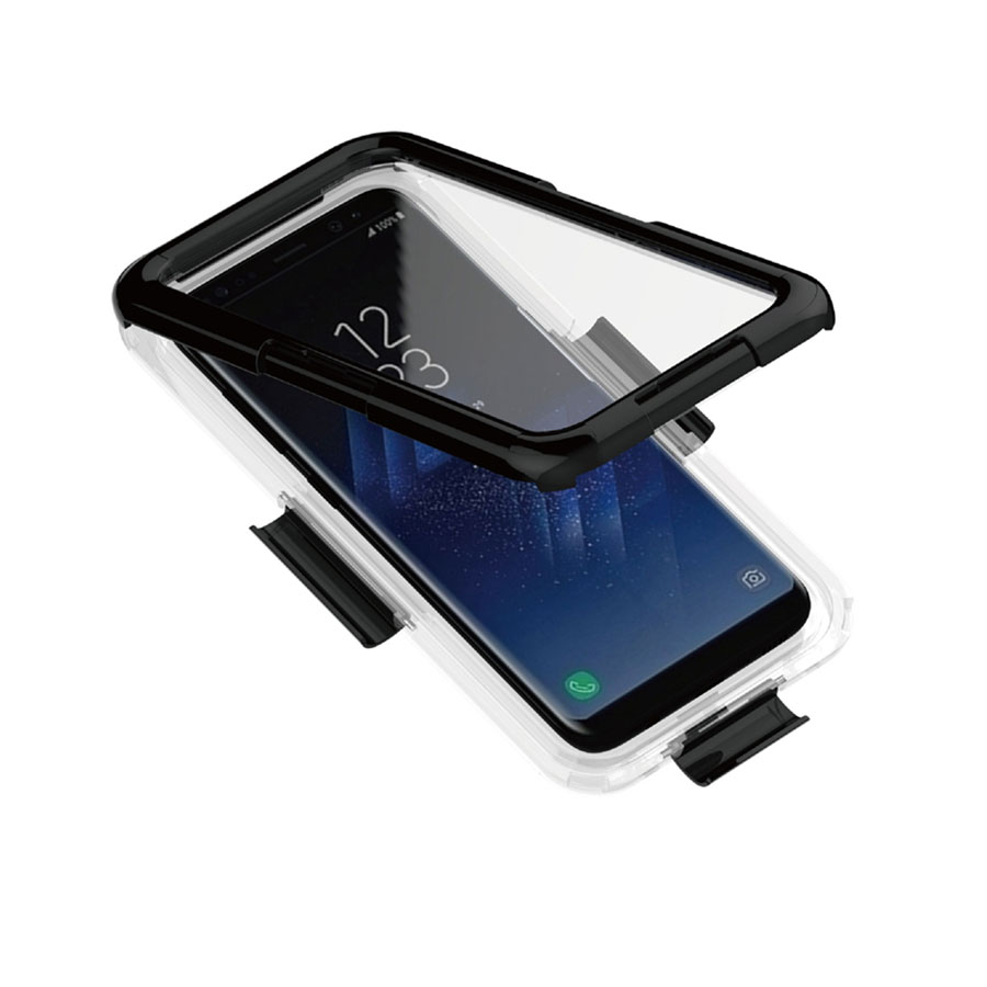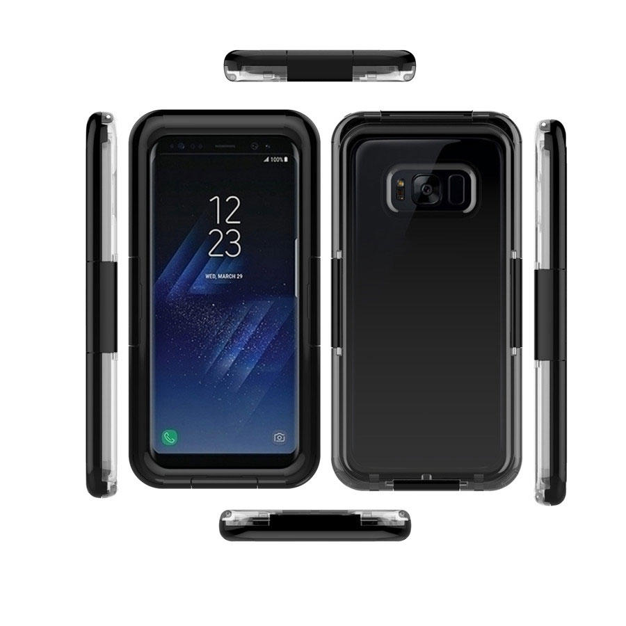 Samsung Galaxy S8+ porvédős vízálló „IP68-as” átlátszó PC tok fekete színű kerettel