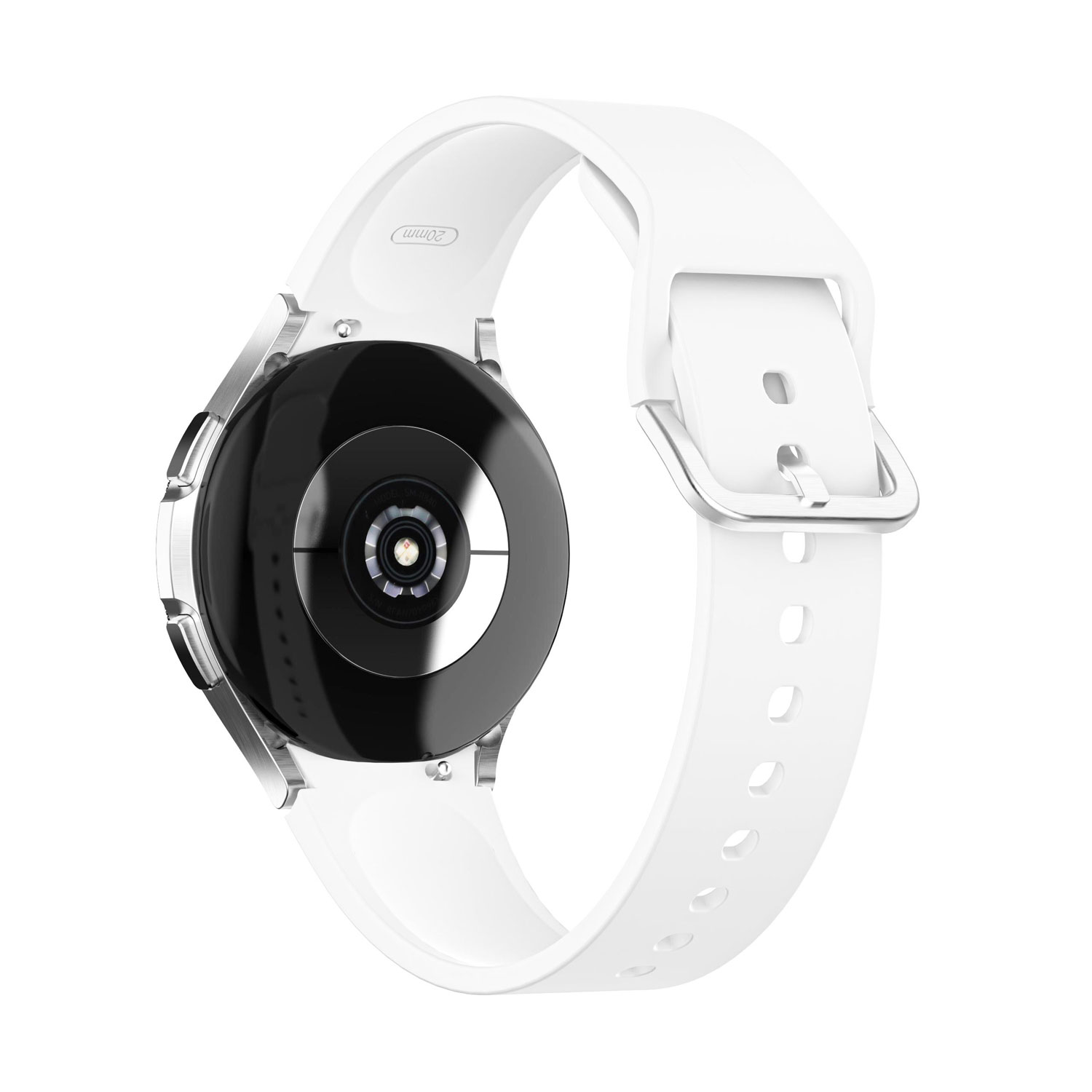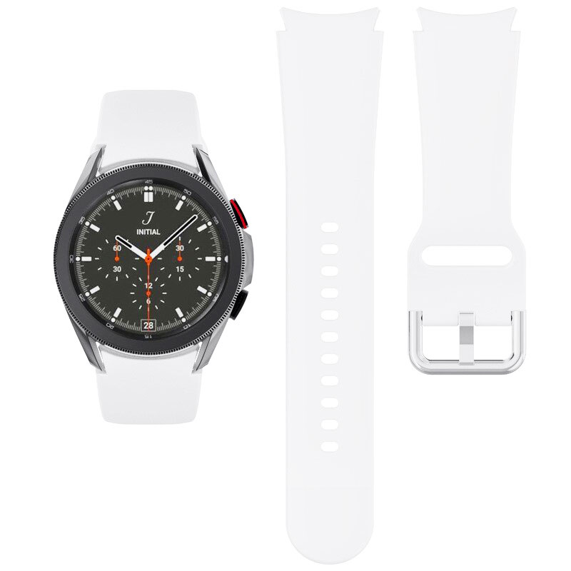 Samsung Galaxy Watch 4 44 mm Sikai fehér színű „ívelt” kialakítású „eredeti” stílusú „bújtatós” csatos „szilikon” szíj