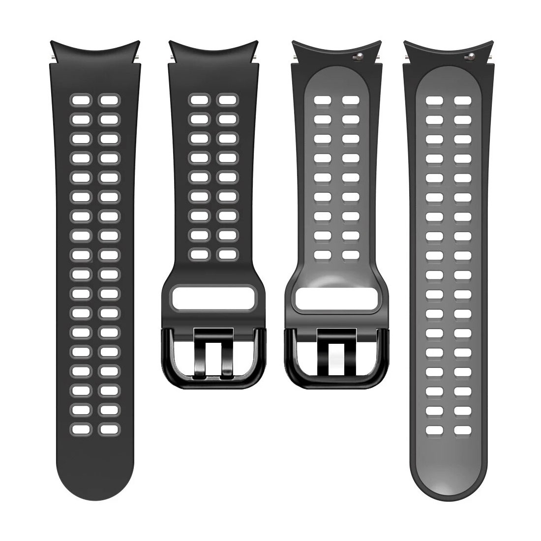 Samsung Galaxy Watch 4 Classic 46 mm Sikai fekete-szürke színű „ívelt” kialakítású „eredeti” stílusú lyukacsos „szilikon” sportszíj