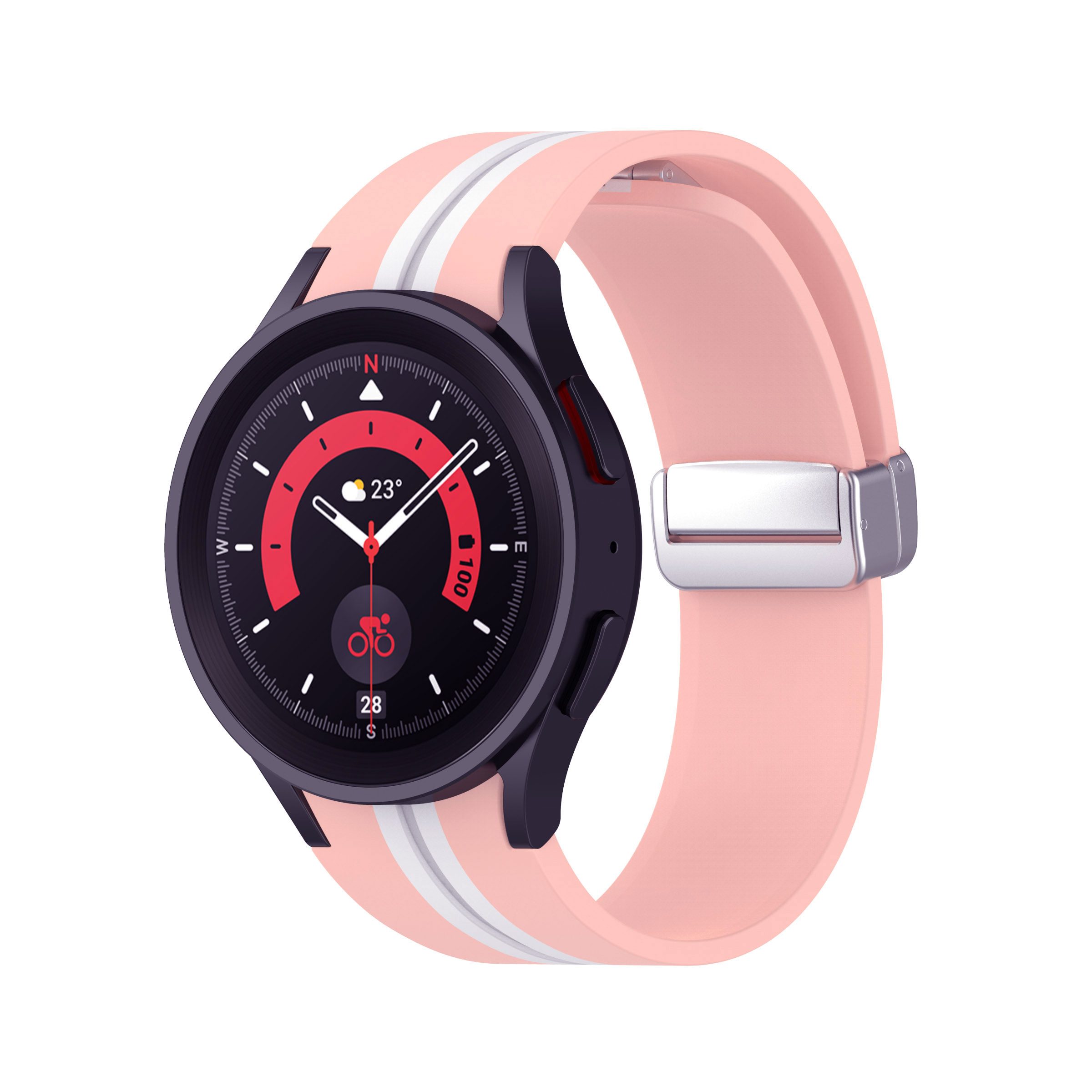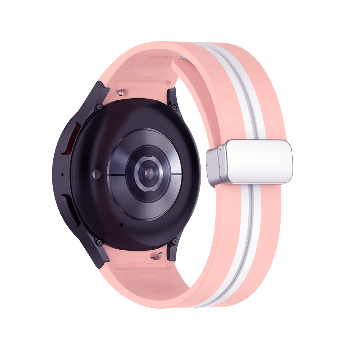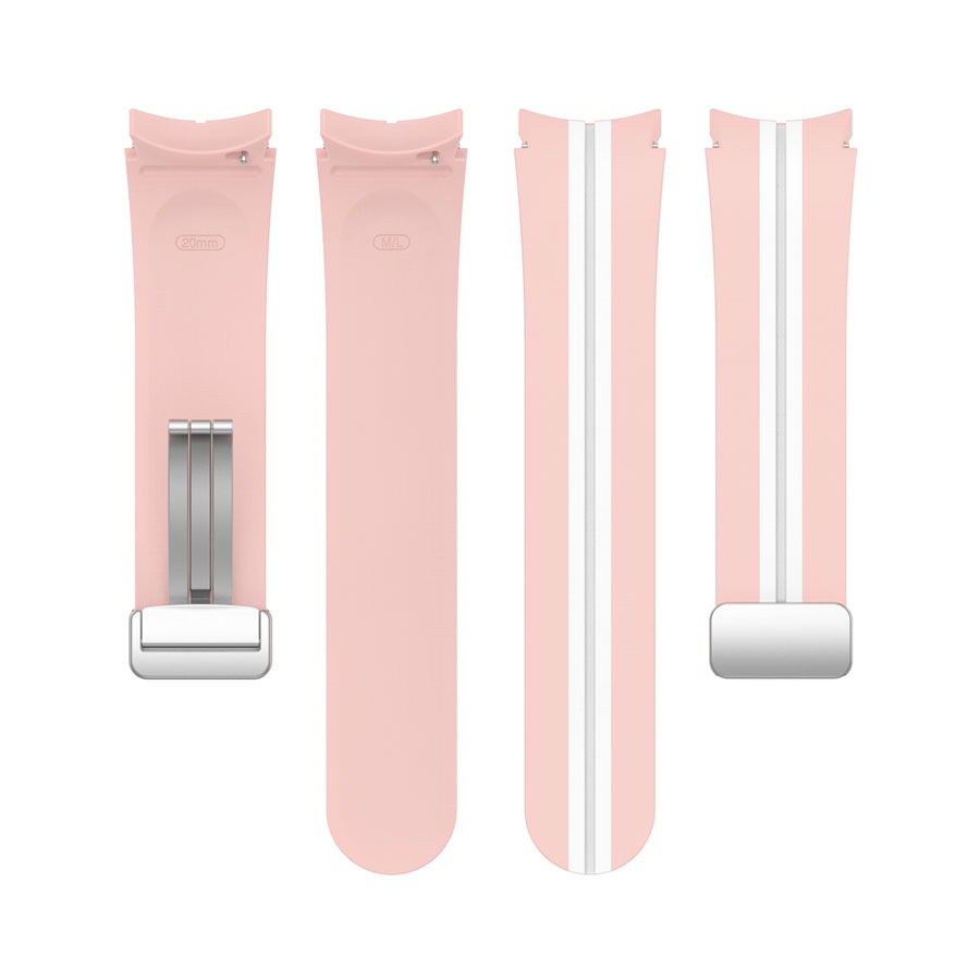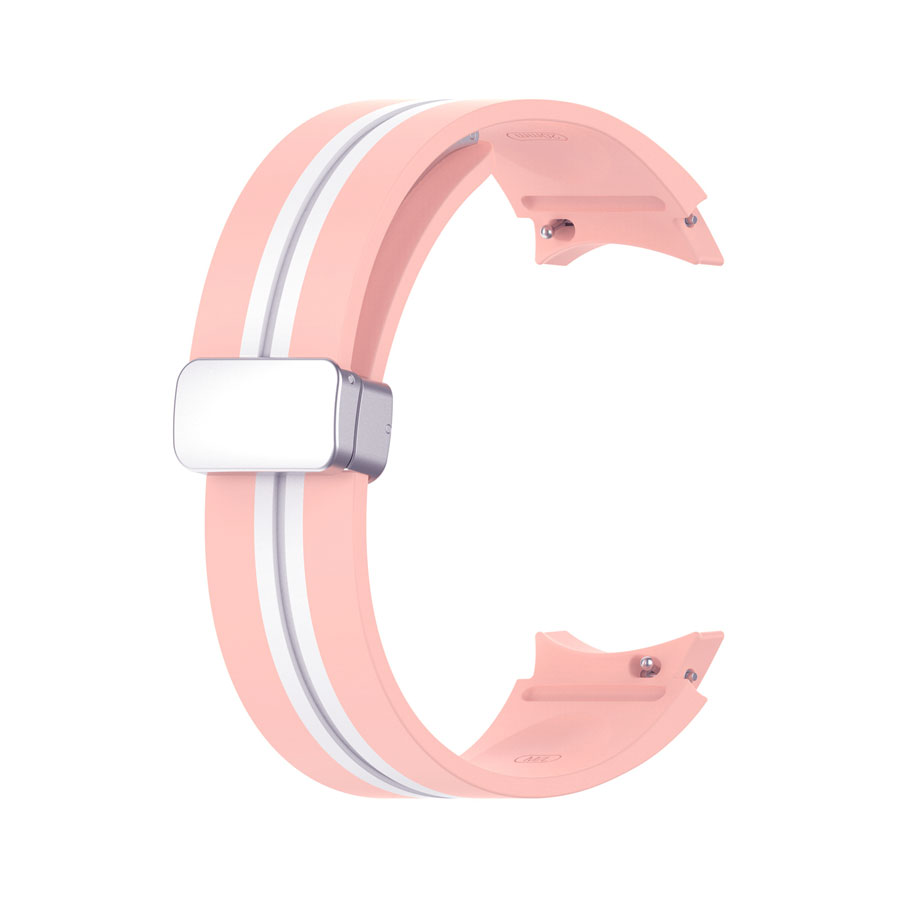 Samsung Galaxy Watch 5 44 mm Sikai barackvirág-fehér színű „csík” mintás „ívelt” kialakítású „eredeti” stílusú „mágneses” csatos D-gyűrűs „szilikon” szíj