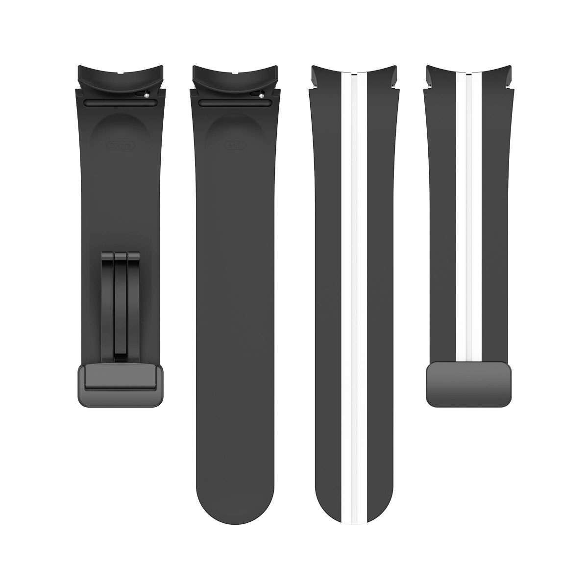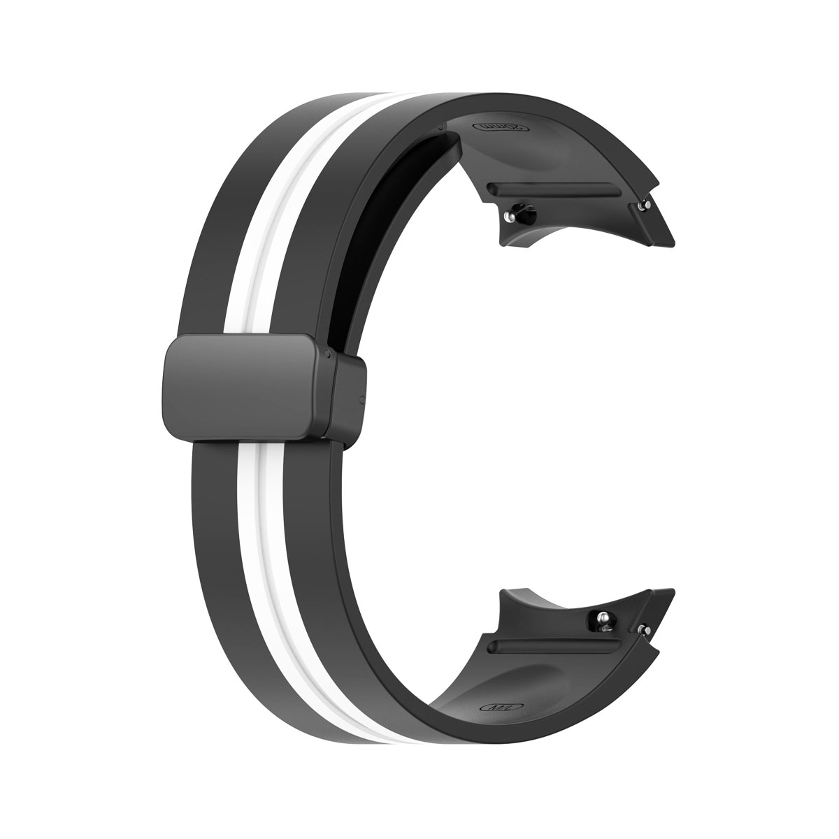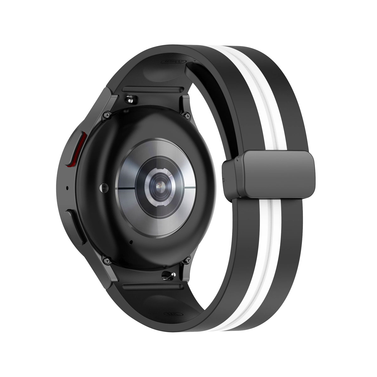 Samsung Galaxy Watch 5 44 mm Sikai fekete-fehér színű „csík” mintás „ívelt” kialakítású „eredeti” stílusú „mágneses” csatos D-gyűrűs „szilikon” szíj