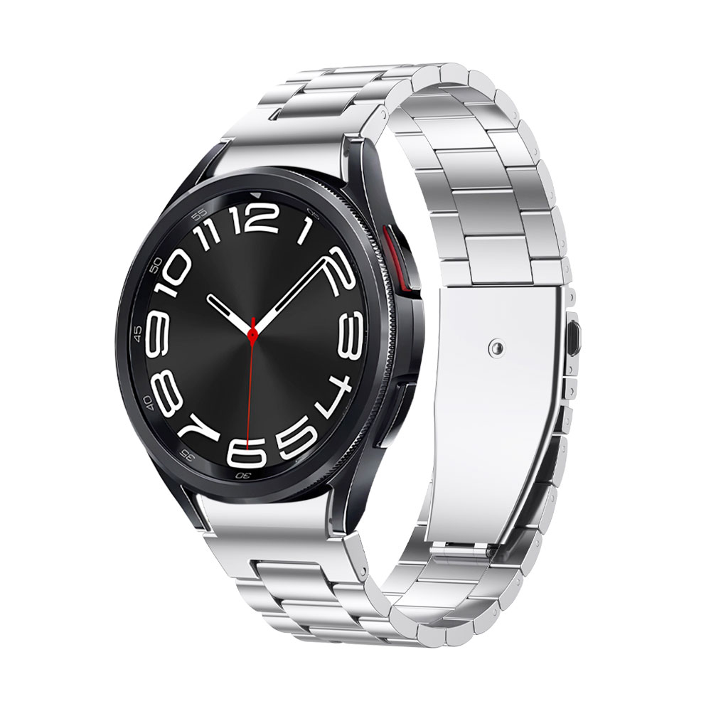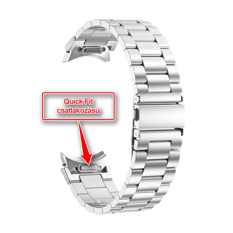 Samsung Galaxy Watch 6 44 mm Sikai ezüst színű „Quick Fit” csatlakozású „ívelt” kialakítású „eredeti” stílusú láncszemes „fém” óraszíj