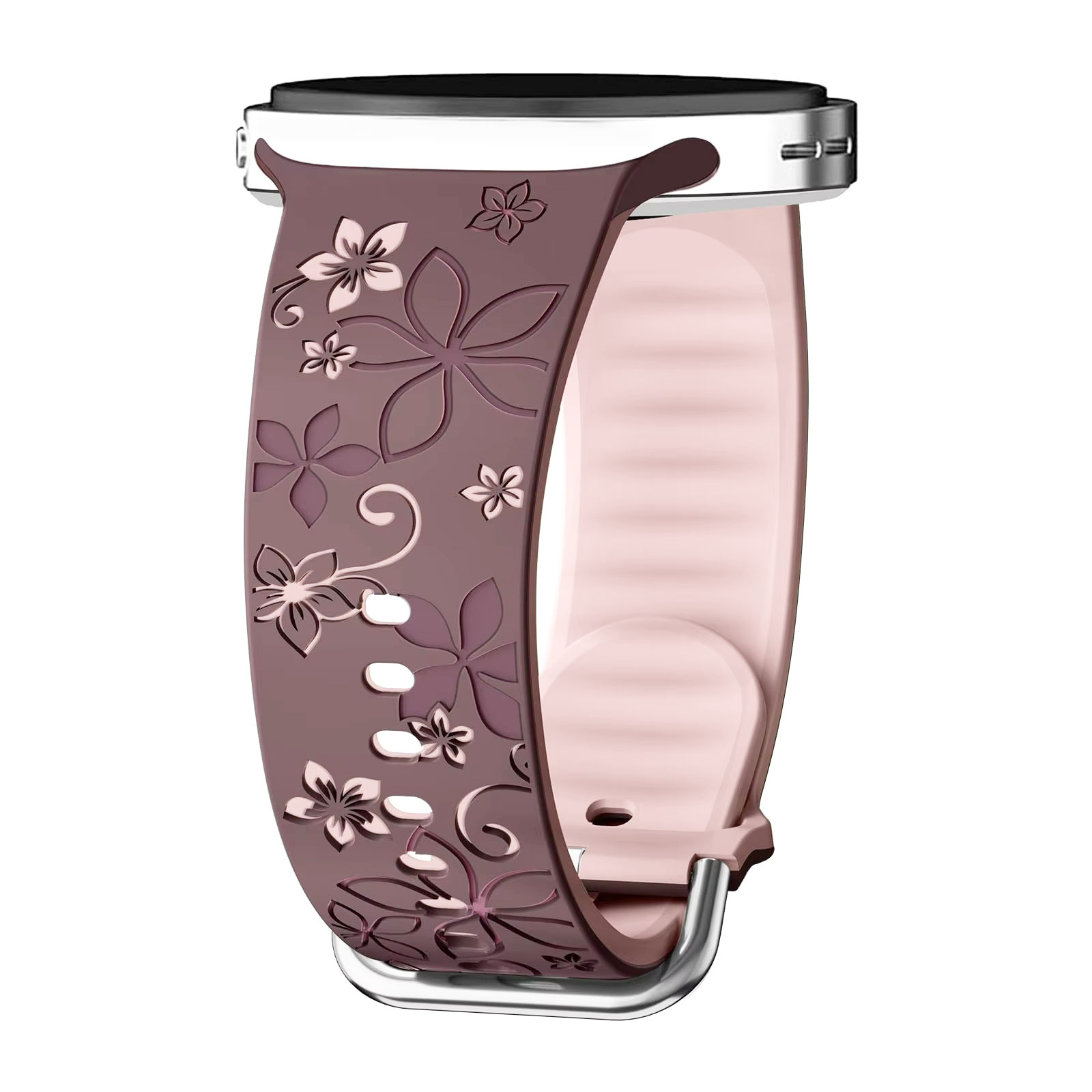 Samsung Galaxy Watch 8 40 mm Sikai füstös lila-púderrózsaszín színű „ívelt” kialakítású „gravírozott” stílusú „bújtatós” csatos „virág” mintás „szilikon” szíj