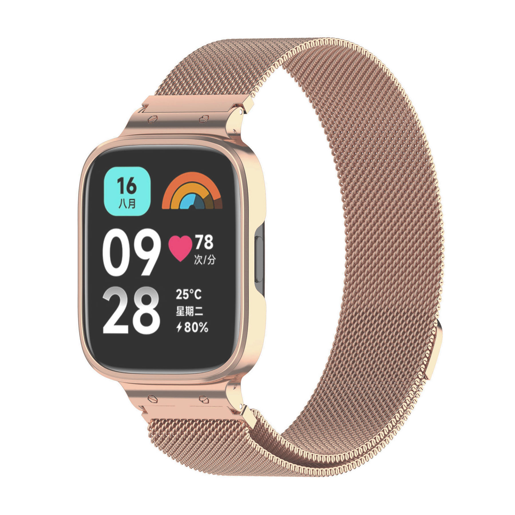 Xiaomi Redmi Watch 3 Active Sikai rózsaarany színű milánói „rozsdamentes acél” szíj + rózsaarany színű alumínium előlapi tok