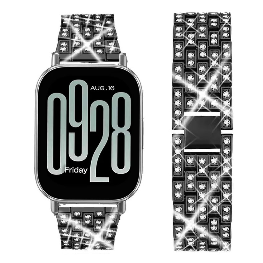 Xiaomi Redmi Watch 5 Active Sikai fekete színű „strasszkő” díszítésű láncszemes „rozsdamentes acél” szíj
